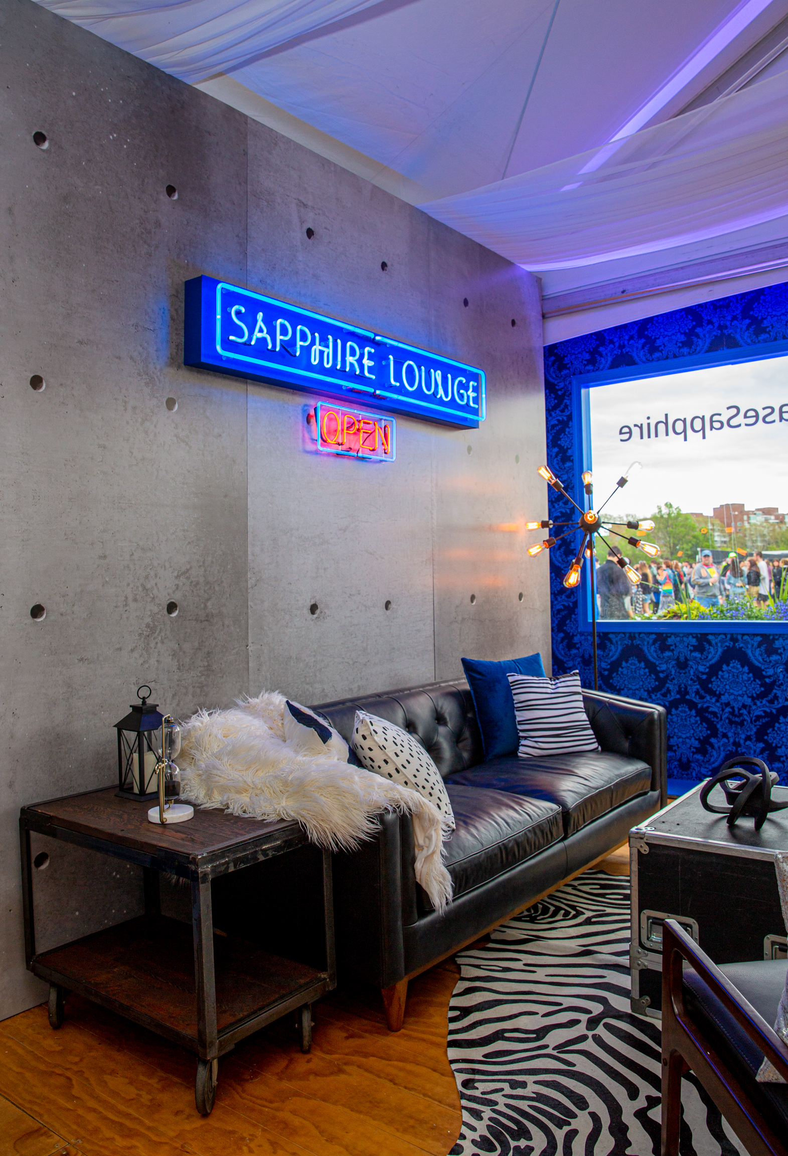 At Boston Calling, the Sapphire Lounge needed to reflect both brand polish and festival personality. I led the creative direction and execution, drawing cues from the city’s music legacy and the energy of its fans. The result was a destination that felt integrated with the grounds rather than tucked away from them.